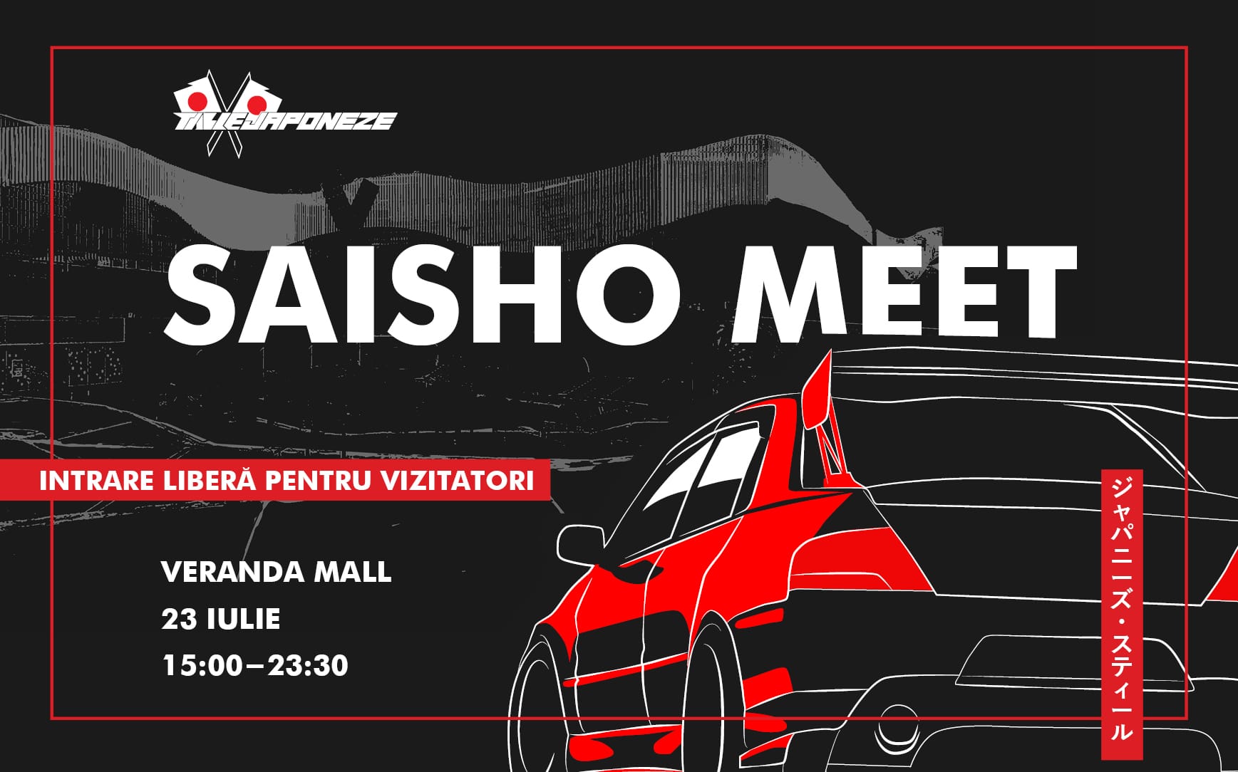 Pe 23 Iulie, la Veranda Mall, are loc întalnirea pasionaților de mașini japoneze – Table Japoneze Saisho Meet în parcarea de la nivelul 3!