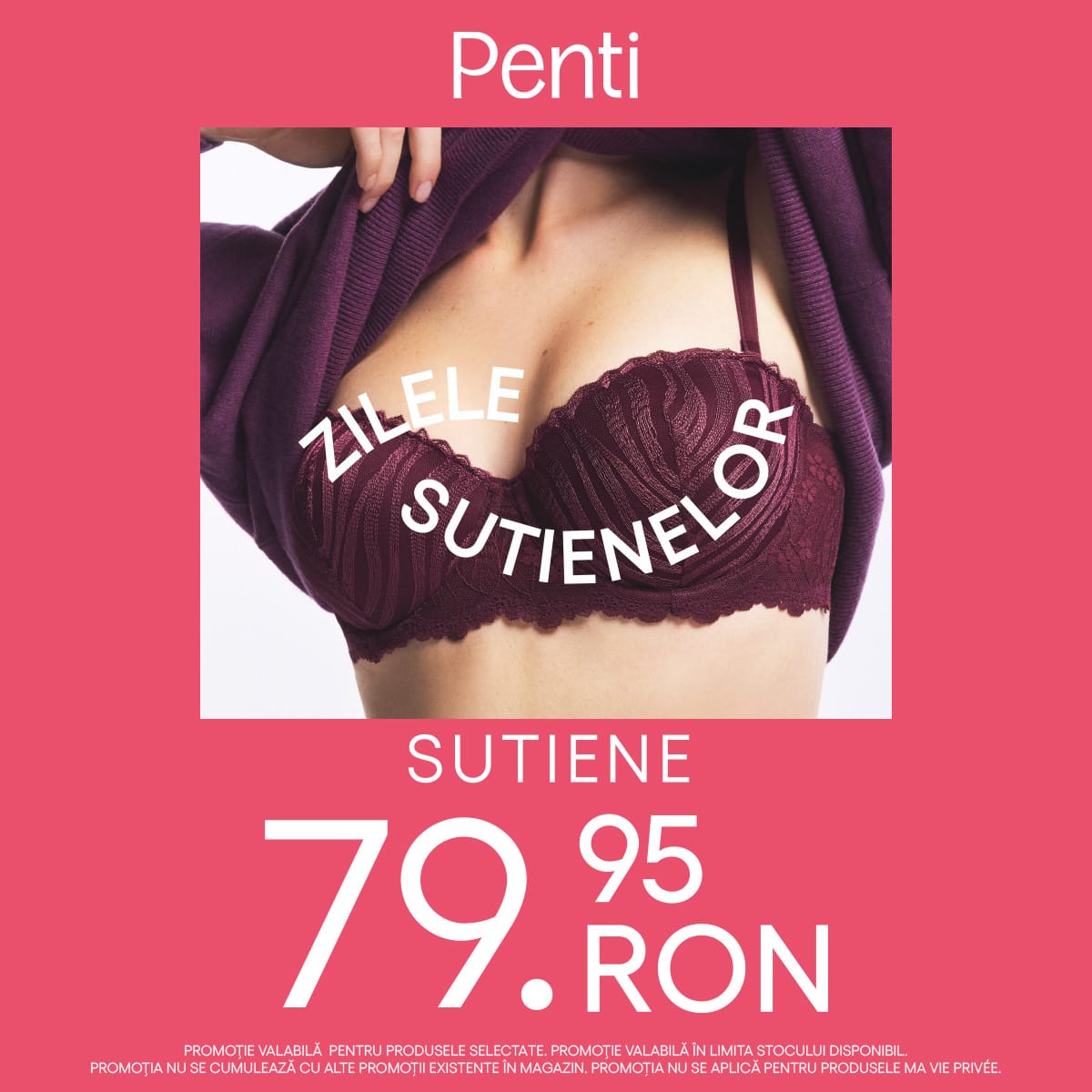 Între 9 și 14 octombrie 2025 te bucuri de Zilele Sutienelor la Penti, cu sutiene la 79,95 lei.